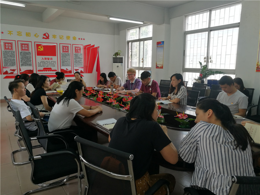 为响应省教育工委和校党委号召,提升党员教师党性修养和深化对主题教育的理解和认识,唤醒党员教师的初心和使命。10月10日中午,304am永利集团教工党支部在艺术楼105党员活动室开展“不忘初心、牢记使命”主题教育集中学习研讨活动。党总支书记欧莹、组织员关树基、教工党支部书记伍峙霖及全体党员教师参加学习研讨会。