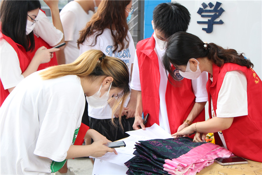 前期党员志愿者通过“暖心短讯”了解毕业生的需求,为当天提供更好地服务做准备。6月19日当天在四教平台设立党员志愿服务点。党员们各司其职,积极为毕业生答疑解惑,协助派发学士服,助力毕业照拍摄工作有条不紊地进行。