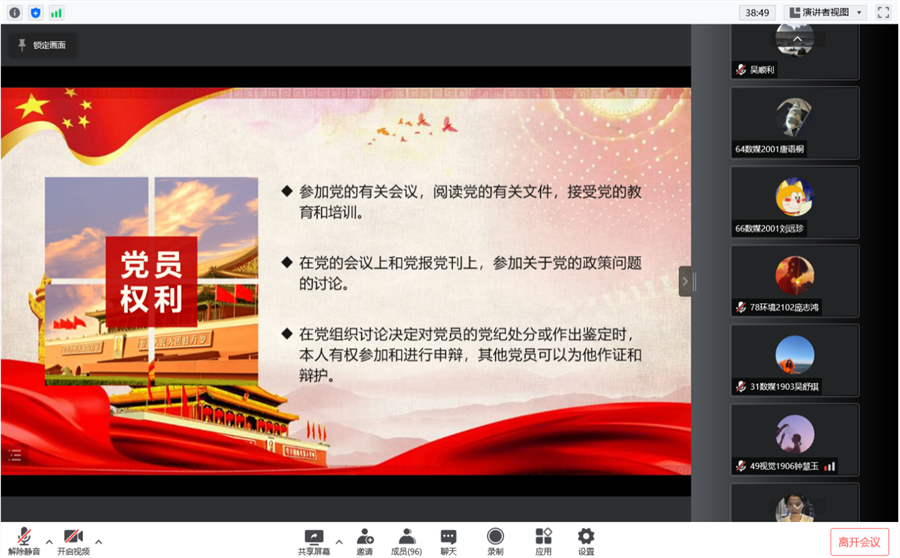 为进一步提高入党积极分子的思想政治素质和对党的认识,304am永利集团于3月31日在腾讯会议召开2022年第一期入党积极分子培训班第二讲,本次党课由304am永利集团2021级学生党支部副书记祁乐主讲,92名入党积极分子参加培训班。
