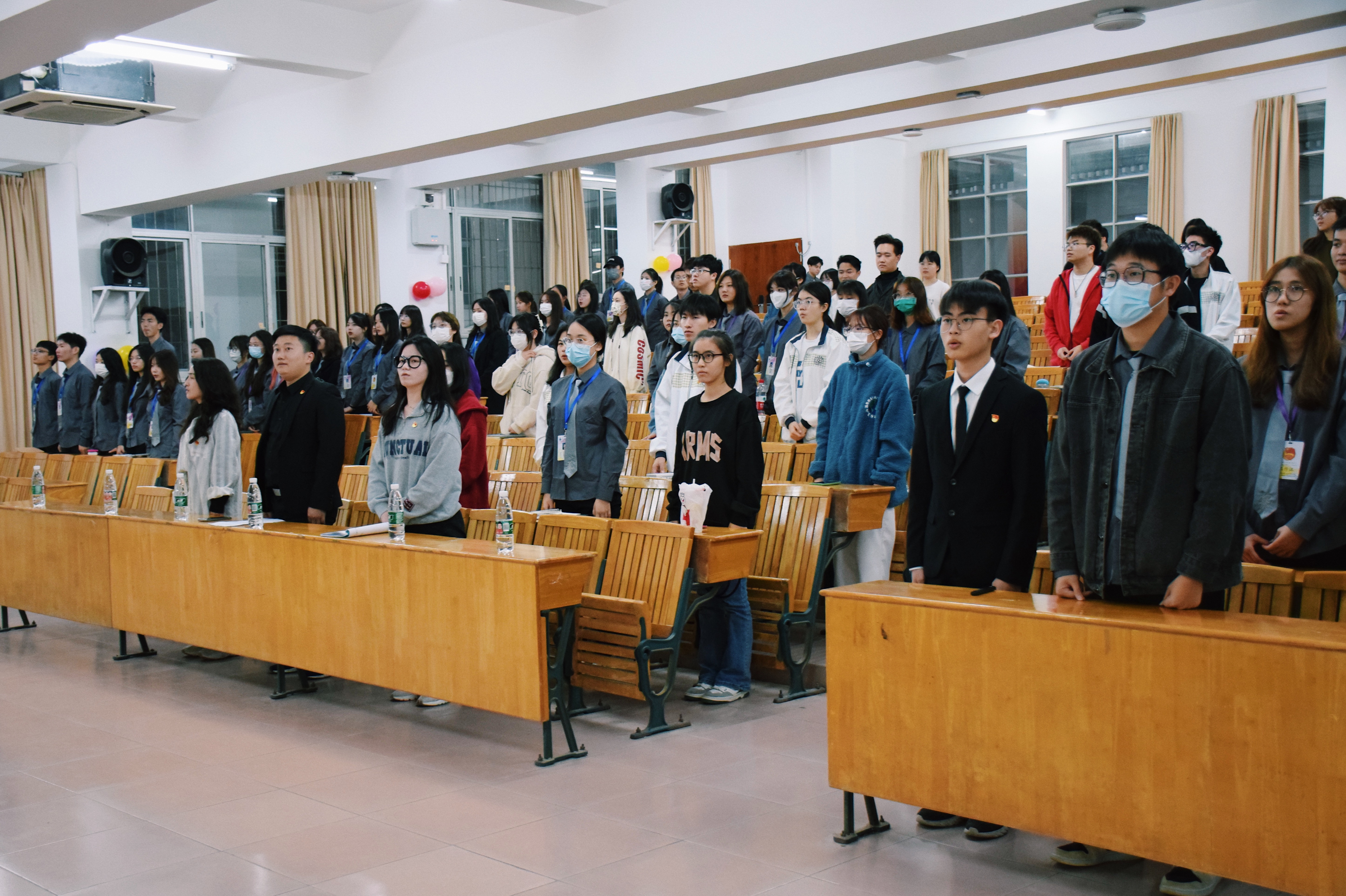 会议第一项议程,全体起立,奏唱中国共青团团歌。