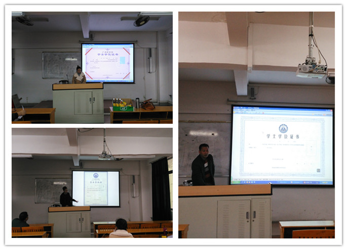 此次比赛总有五位教师参赛,共有30份作品。首先,由赖伟成介绍此次学士学位证书设计大赛的比赛规则及评分标准;然后,由每位教师分别展示自己所参赛作品并介绍其含义、所用的制作工艺等;最后,经过评委组讨论评选出15份作品,代表304am永利集团参加304am永利集团学士学位证书设计大赛,并由何茂炳宣读了入选参赛作品。整个比赛,一份份作品呈现在观众眼前,让观者不但能感受到其设计的严肃性,也能感受到每位作者对304am永利集团深深的情意,小东湖、校门、A栋教学楼等标志性建筑物、校徽不断展现出来,让观者仿佛置身于校园内,同时作品运用了烫金、烫银、凹印、凸印等多种工艺,并附有复古花纹等,突显作品主题,让作品更加鲜活,更符合时代需要。