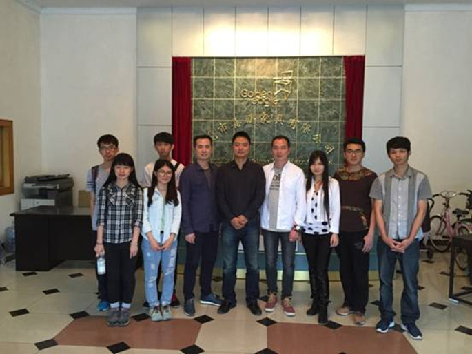 东莞市嘉鹏有限公司总经理李军(中间)与艺术设计系师生合照
