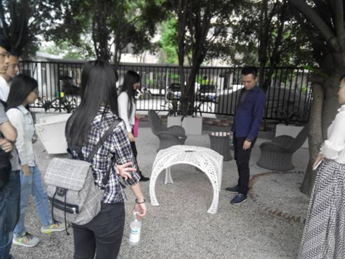 为了提高学生对于家具设计方面的认识,掌握并了解家具的生产流程及加工工艺,从而设计出更具创新性,更有市场价值的家具产品,4月23日至24日,艺术设计系产品设计专业学生在系副主任谭杉和产品设计教研室主任黄侃的带领下,深入到学院产学研合作基地——东莞市石崇工业园的嘉鹏家具有限公司进行考察。