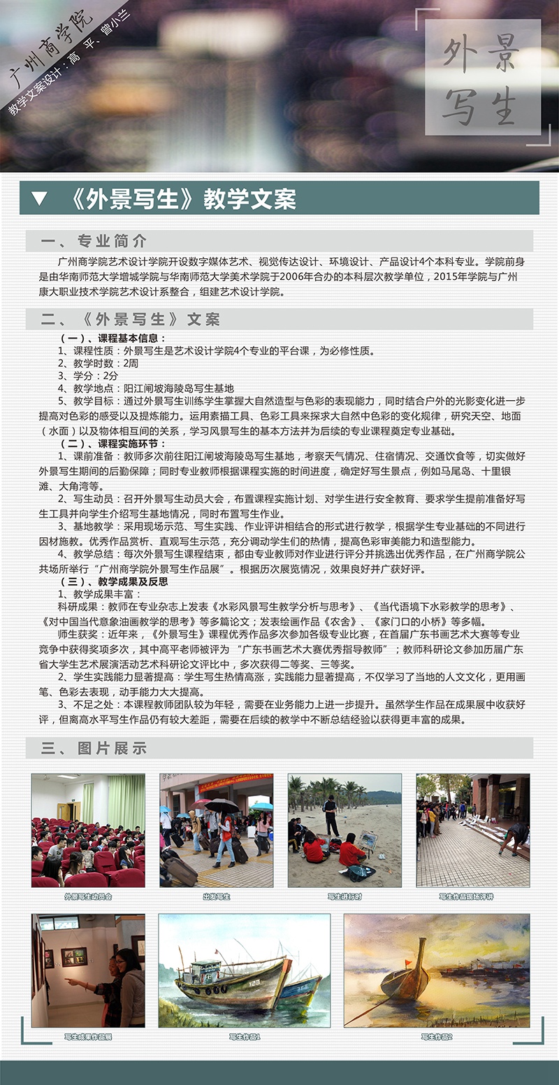 此次入选的水彩画作品《悠悠的港湾》是黎志伟在写生基地阳江海陵岛为2017级学生示范的教学作品,教学文案《外景写生》则是该课程的教学方案。此次双年展很好地展现了我院师生的优秀美术作品,是对我院教育教学成果的一次肯定,更是推动我院应用型人才培养教学改革的动力。