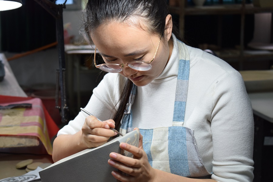 潘梦梅老师专注艺术创作,她时常一整天一整天地待在工作室里创作。有学生问她说“潘老师放假了,你怎么还待在工作室里?怎么不去好好休息一下?”她说“我正在休息,这就是我休息的一种方式。”她常常跟学生说“如果你画图能画到忘了时间,那你在这个过程中一定会有很大的进步。如果你能爱上你所学的专业,那将会是一件非常幸福的事情,学习对你来说再也不是什么难事,它将是一件本能的事情。”匠心,隐藏着的是专注和对完美的追求,一丝不苟,苦心孤诣。虽难以臻于至善,但那份无限趋近至善的感觉足让潘梦梅老师感到欣慰和自足。