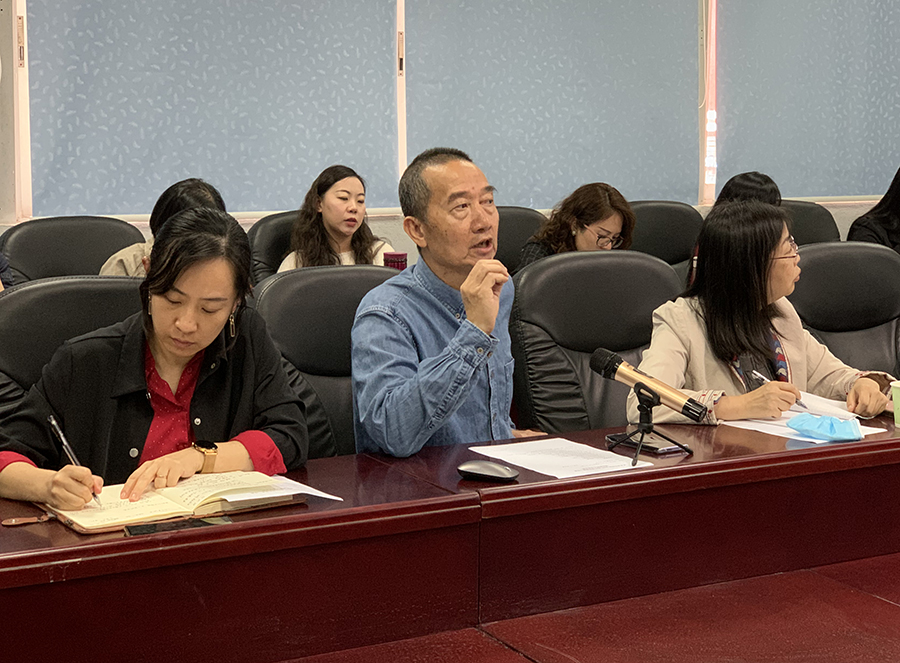 教学副院长赖伟成就近期的常规工作对在场的老师提醒,并提出评估期间学院主题展览“回望”作品展的细节讨论和人员工作安排,希望把这次重要的展览作为评估的一个亮点和对培养应用型人才的全面展示。