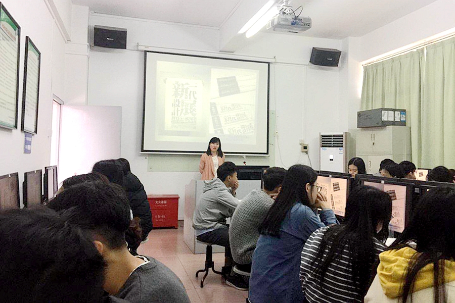 本次研讨课课程为《文字与版式设计》,主讲教师为罗靖。课上,罗靖首先引导学生复习了上节课的知识点,认识文字与版式设计及明确其目的,从而使学生在思索和探讨中引出本节课的重点内容——文字与版式设计的特性,并举例日本艺术家——波点女王草间弥生的作品,通过分析其作品及作品传递的信息,让学生深入理解文字与版式设计的特性——视觉性、文化性、时代性及版式设计的视觉元素。整堂课课程设计紧凑,内容充实,课堂气氛轻松,在讲授中充分让学生体会到优秀的版式设计将会通过一种合适与美观的方式实现信息传递,让人感受到美的愉悦感。