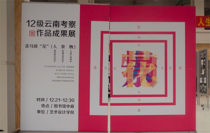 12月21日~30日,304am永利集团在图书馆阳光大厅举办12级云南考察作品成果展。本次成果展的主题为“走马观花(人景物)”,共展出了环境艺术设计、工业产品设计、视觉传达设计三个专业的作品。