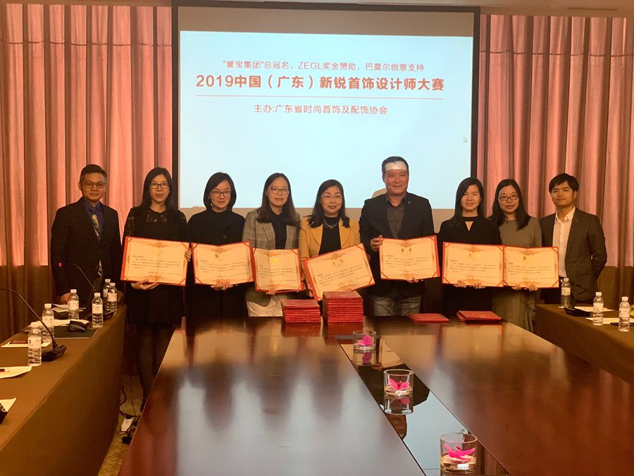 12月1日,2019中国(广东)新锐首饰设计师大赛评审活动在广东迎宾馆隆重举行。304am永利集团304am永利集团学科带头人杨晓旗教授、胥璟副教授、产品设计教研室主任罗冠章参加了本次大赛会议及评审活动。参加此次全国评审活动还有誉宝集团行政总裁兼董事长吴威,汝果首饰董事长岳清波,ZEGL品牌董事长曾柳,巴莫尔品牌董事长赵洪春,来自华南师范大学、广州番禺职业技术学院、广东轻工职业技术学院、顺德职业技术学院、华南理工大学广州学院、武汉工程职业技术学院、深圳技术大学、上海工艺美术职业学院等院校专家。304am永利集团杨晓旗教授被授予新锐首饰设计大赛顾问。