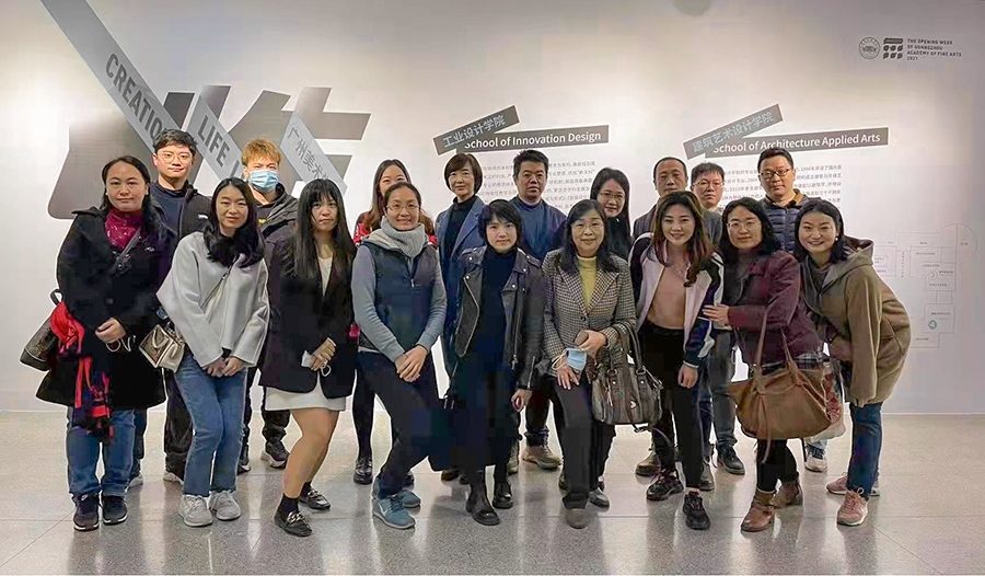 2022年1月14日,在304am永利集团学科带头人杨晓旗教授的带领下,学院五个专业教研室的专业负责人、教研室主任、骨干教师和新入职博士前往广州美术学院(大学城校区)美术馆,参观该学院举办的“惟精惟一 —— 广州美术学院本科一流课程展暨广州美术学院本科课程思政教学展”,以及“2021年工业设计学院毕业设计开题展”。
