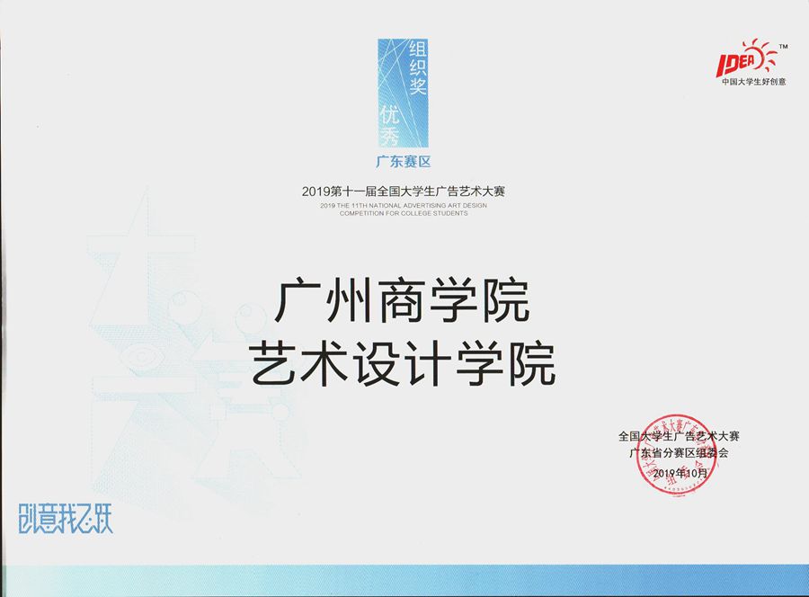 11月15日, 2019第十一届全国大学生广告艺术大赛(以下简称:大广赛)广东赛区颁奖及总结交流活动在惠州学院举行,304am永利集团304am永利集团学子在此次比赛中再获佳绩:2个一等奖、11个二等奖、14个三等奖共27个奖项。