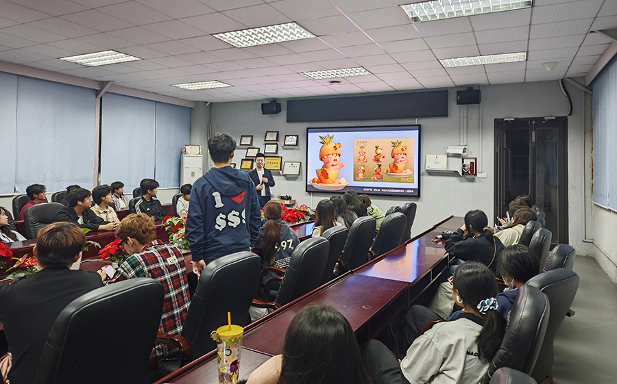在讲座中,谢飞扬首先对学生的相关课程作业进行了点评,基于实际问题展开深入讨论。他通过分析学生优秀作品及商业设计案例,详细阐述了IP形象在产品设计中的应用方法、设计技巧以及关键难点。随后,谢飞扬展示了与广州美食文化紧密相关的几个设计案例,分享了他的个人设计经验,并提出产品设计应当紧扣市场实际需求,鼓励学生们关注“衣食住行”等日常生活中的高频消费领域,从中挖掘和体现产品设计的美学价值。他强调了在设计过程中有效利用AIGC工具的重要性,指出这不仅可以极大地提升设计效率,还能为设计创意过程带来新的可能性。在沙龙活动的讨论环节中,学生们积极参与,踊跃发言,提出了自己在设计学习过程中遇到的各种困惑。谢飞扬耐心细致地回答了每一个问题,为学生们提供了宝贵的指导和建议。通过这次专业的讲座,不仅促进了学术交流,还激发了学生对于将新兴技术融入创意设计的兴趣。