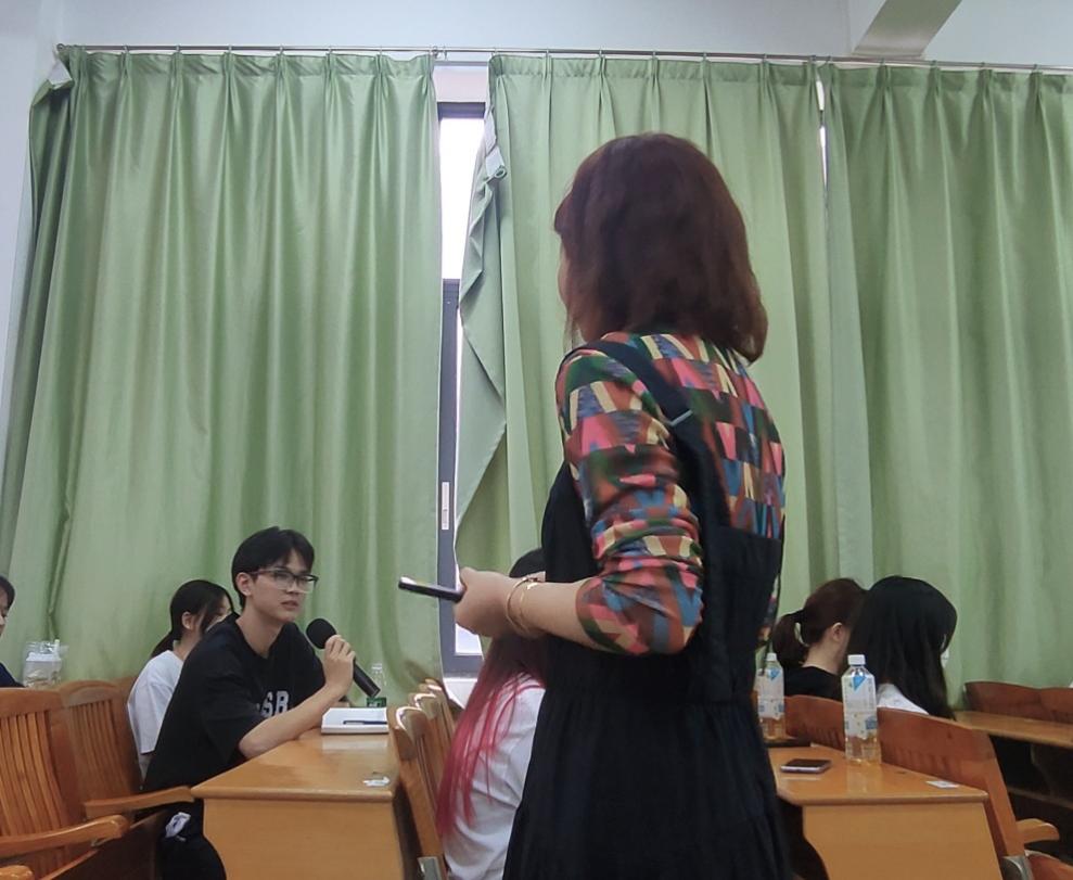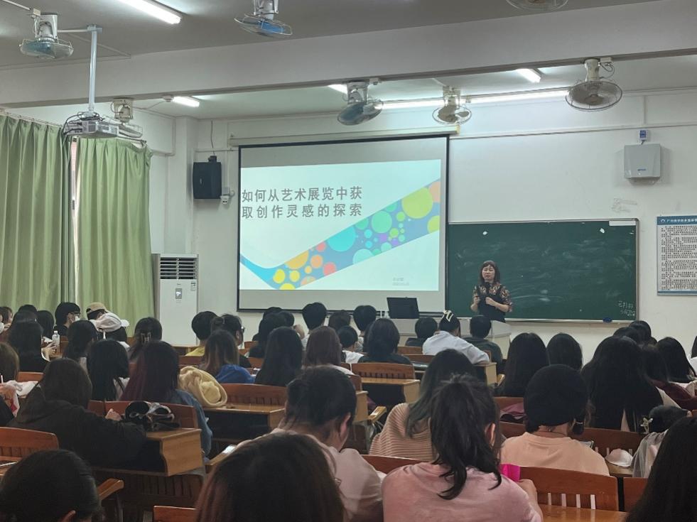 在讲座上,李安娜先从“为什么要去美术馆?”这个问题出发,举出了各个前往美术馆观众的“属性”,其次向同学们介绍了美术馆所存在的艺术氛围,不单单只是观赏,更应该有所思考有所创作,立足于当下,结合现实以及美术馆中的艺术创作,做到为人类美好生活而设计、为人类提供生活审美便捷而设计。
