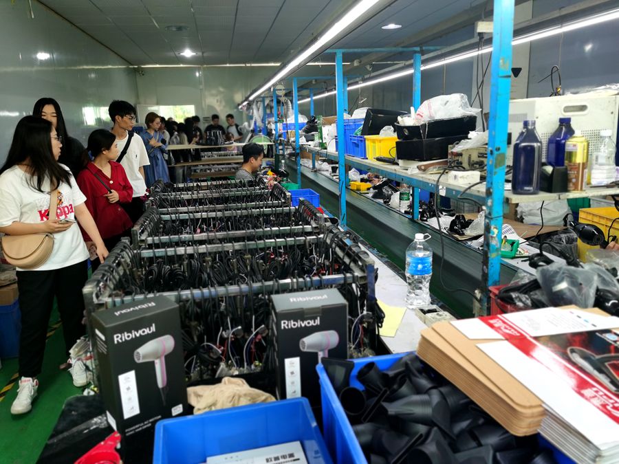 科宏电器有限公司负责人吴培源总经理对我院师生一行表示欢迎,并带领师生参观了产品生产技术部、研发与技术部及工厂的注塑车间,让师生充分了解到美发产品的使用方式和工作原理,产品的生产流程、检验流程、研发过程以及产品注塑成型的相关内容。希望双方今后能进一步扩大合作领域,为学院的教学和就业工作提供支持。
