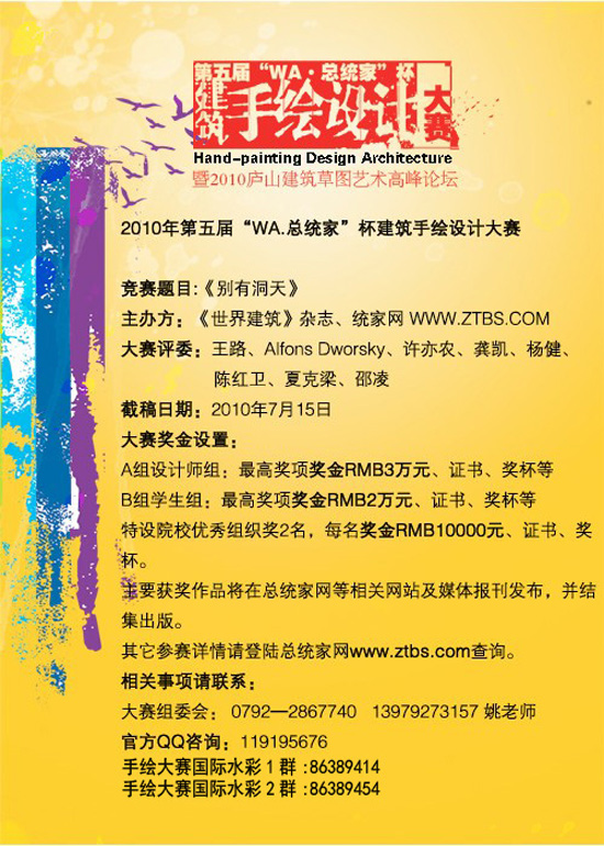 2010年第五届“WA.总统家”杯建筑手绘设计大赛暨庐山建筑草图艺术高峰论坛