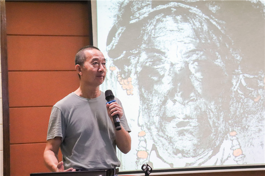 林钰源教授从自己的成长经历入手,分享了自己的成长之路,进而引出“生活与艺术”的关系。他提到:要想创作出好的作品,大家需要把对生活的认知与体验看作艺术创作的一部分,坚持亲近自然、贴近生活、感受生活,会发现有意想不到的收获。他通过分享自身在甘孜、版纳、湘西、贵州等不同地方写生的绘画作品,让学生体会不同的生活习俗在绘画中的不同表现。他指出只有亲眼见到生活原来的样子,朴实的美,才有韵味。只有把描绘事物的特征勾勒出来,才能给人带来一种特有的美感。