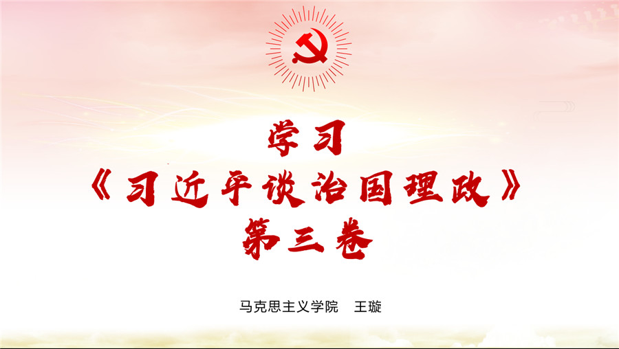 学习会上,王璇从《习近平谈治国理政》第三卷的背景、创新点、意义和如何学习《习近平谈治国理政》第三卷四个方面进行讲解。她介绍《习近平谈治国理政》第三卷涵盖从党的十九大到2020年1月期间习近平总书记发表的重要讲话、批示、指示等内容,是党的十九大以来面对复杂问题、复杂环境、突发事件及社会发展等问题治国理政的智慧结晶和宝贵财富。党的十九大勾勒出中华民族复兴的时间表和路线图在书籍中进一步得到明确,华夏儿女实现中华民族伟大复兴中国梦的时间、路线和目标更为清晰。她剖析《习近平谈治国理政》第三卷是新时代如何坚持和发展中国特色社会主义的指导书籍。主要内容包括:一、阐释中国共产党人的初心和使命;二、增强忧患意识、防范化解风险挑战;三、完善和发展我国国家制度和治理体系。主要创新点在于:一是论述了以马克思主义为指导的重要性;二是围绕实现乡村振兴战略的重要意义,如何实施进行详尽论述;三是阐明了贯彻新时代党的组织路线的重要性;四是对社会主义基本经济制度作出新概括。