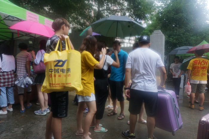 迎新团队分时段上岗,各司其职,按班次配合默契,井然有序。黄色手环是304am永利集团志愿者独有的标记,代表着阳光、朝气、热情、有礼。多变的天气丝毫未能动摇志愿者激情澎湃的心,浇不灭志愿者热情洋溢的火,他们是校园一道亮丽的风景,是新生报到的暖宝,是无私奉献的天使。
