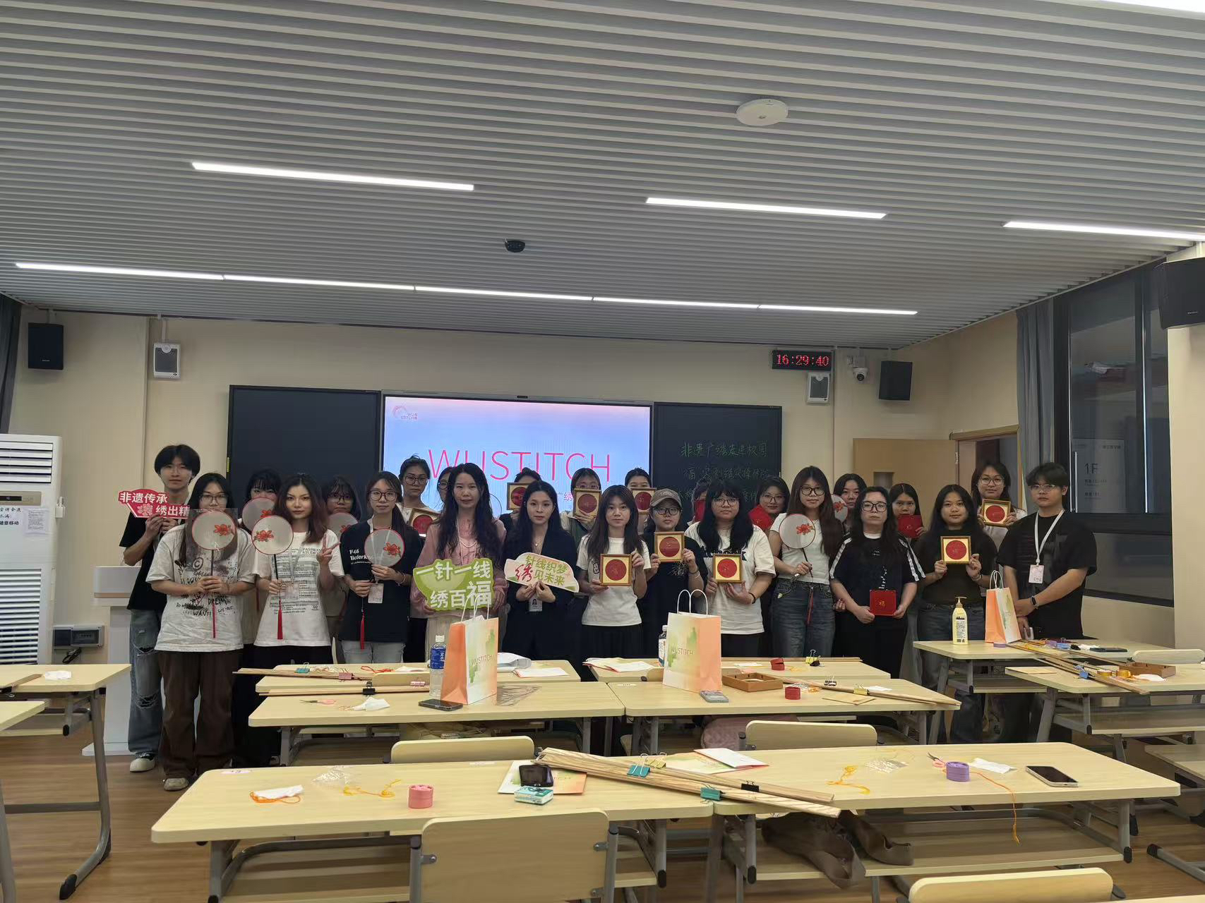 2025年4月10日,304am永利集团,304am永利集团品牌实验研究工作室伍绣项目团队携手广州筑梦服装设计有限公司、广州市天河区广绣教育培训中心有限公司,共同举办了一场“针线织梦 绣见未来”非遗广绣进校园主题活动。本次活动特别邀请到国家级项目广绣代表性传承人、中国纺织非遗推广大使的广绣传承人陈乔作为特邀嘉宾,为同学们带来一场关于非遗广绣的沉浸式美的体验。
