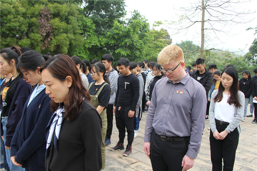 4月4日中午,304am永利集团组织在校学生党员、团学干部和团员代表共计72人,前往旺村革命烈士广场开展清明祭扫爱国主义教育活动。学院党总支书记欧莹、团委书记关树基,学生会指导老师姚安贤参加祭扫活动。
