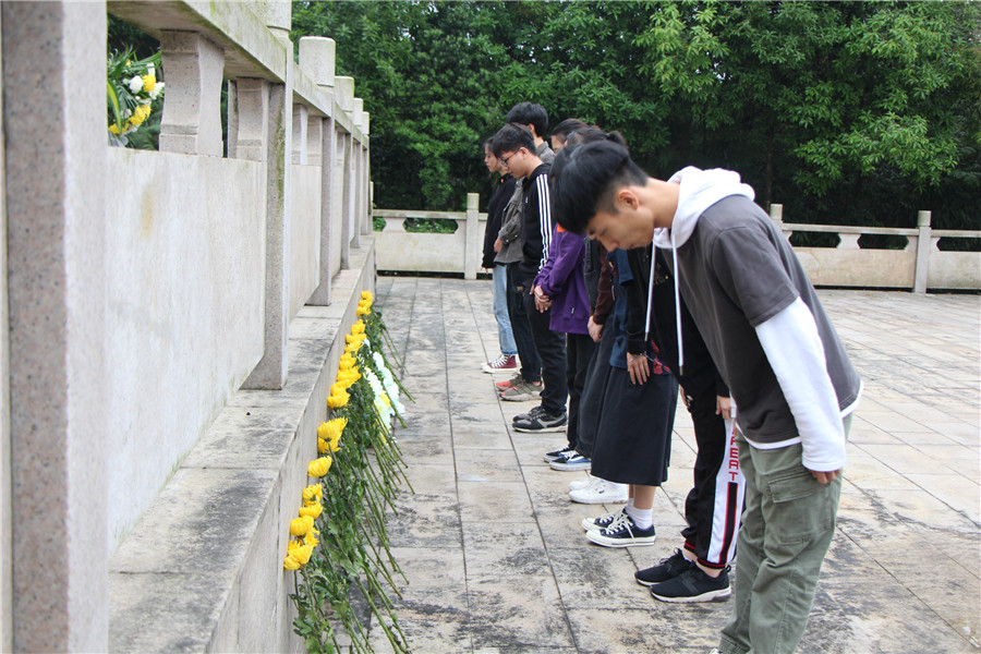参与活动人员怀着对革命烈士无比尊敬的心情来到烈士广场,在学院团委的组织下对广场进行了简单的清扫,向为革命事业献出宝贵生命的革命烈士敬献花圈和菊花,在烈士墓碑前进行三鞠躬及行默哀礼以表示对烈士的敬仰。