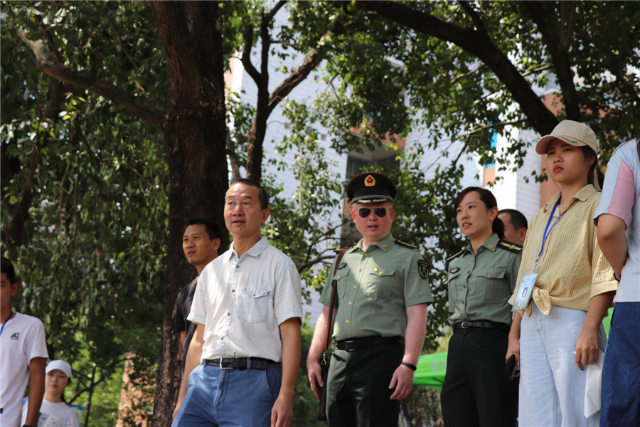院领导一行到军训场地看望慰问教官和新生,大大鼓舞了受训部队的士气,激发了全体新生刻苦训练、勇于超越、力争荣誉的决心。