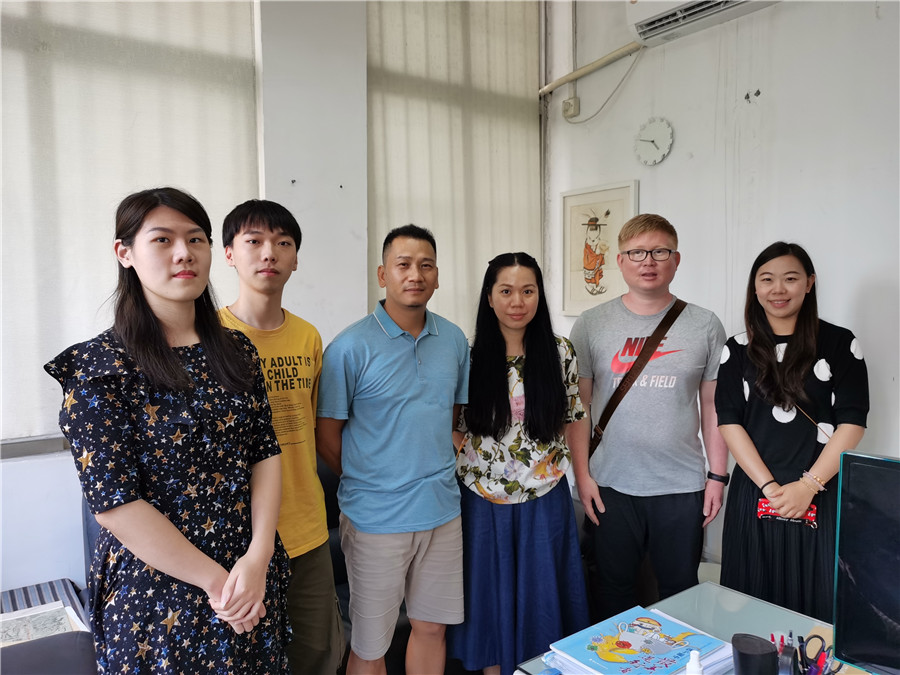 赖伟成一行首先来到岭南美术出版社,看望在出版社参加企业学习调研的李斯老师和参加专业实习的2017级学生梁嘉圳、2018级学生刘姝彤。该社数字网络出版部副主任林怡全程陪同赖伟成一行参观了我院师生在企业调研实习的工作环境,了解师生平日在出版社的具体工作内容、配合程度和完成质量。林怡全面介绍了我院师生在出版社的工作情况,对师生给予高度评价。她谈到:“师生都能快速找准定位,融入出版社工作,在数字动画制作、新媒体框架搭建、新书发行等各方面都发挥了一定的作用”。