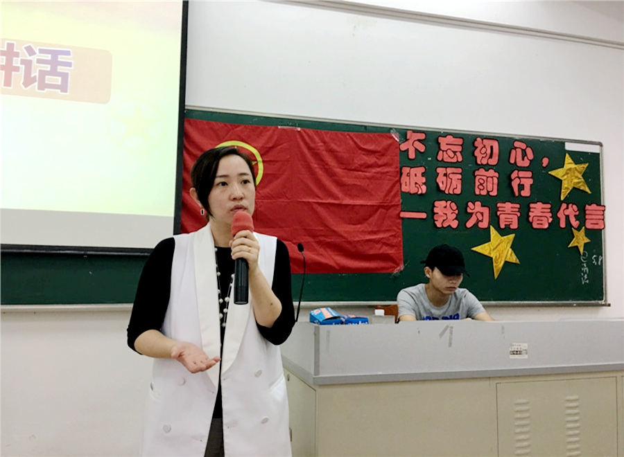 关树基向大家讲解了五四运动前后的变化,通过缩略版《厉害了,我的国》视频播放引入五四运动爱国主义教育主题,带领与会人员穿越历史的天空,重返硝烟弥漫的战场,探寻民主与科学的真谛、救亡图存的惊险、改革开放的激动、民族复兴的波浪壮阔、和平发展的骄人成绩。关树基引用大量的史实、数据和经典语录激发青年学生的爱国热情和使命担当,树立团员意识,坚定信仰,明确任务,不忘初心,砥砺前行,立鸿鹄志,扬青春帆,普奋斗曲。