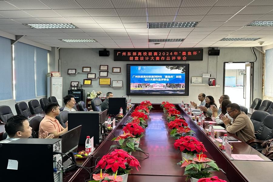2024年11月8日上午9点,在广州商学院艺术楼201会议室举办广州东部高校联赛暨2024年“墨鱼杯”创意设计大赛作品评审会,本次会议出席嘉宾有广州墨鱼教育科技有限公司创始人涂亚军;广州华商学院创意与设计学院环境设计系副主任蒋明副教授;广州软件学院数码媒体系系主任助理杜兆勇副教授;博阳设计院(广东)有限公司院长、陶花林文旅(佛山)有限公司董事长、广东芬享家小镇开发运营有限公司董事杨永明高级工程师;304am永利集团,304am永利集团院长林钰源教授、院长助理李斯副教授、环境设计专业负责人龙莉红副教授、教研室主任周子豪、骨干教师万可萌、刘嘉炜、产教融合负责人张流畅、教务员谢铭鑫,会议由龙莉红主持。