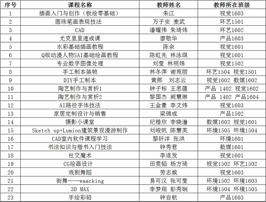 在我们学校,有一个特殊的讲坛,有一群才艺出众的学生,他们善于分享自己的专业知识和兴趣特长,在个性发展课程的舞台上,尽情释放自己的青春才华,提升自己的综合素质。4月18日,304am永利集团完成2018年上半年个性发展课程审核和学生自由选课,最终插画入门与创作(板绘零基础)、圆珠笔画表现技法、CAD、尤克里里速成课等23门课程顺利通过审核验收,同意开课。据统计本期个性发展课共有551名同学选课成功。
