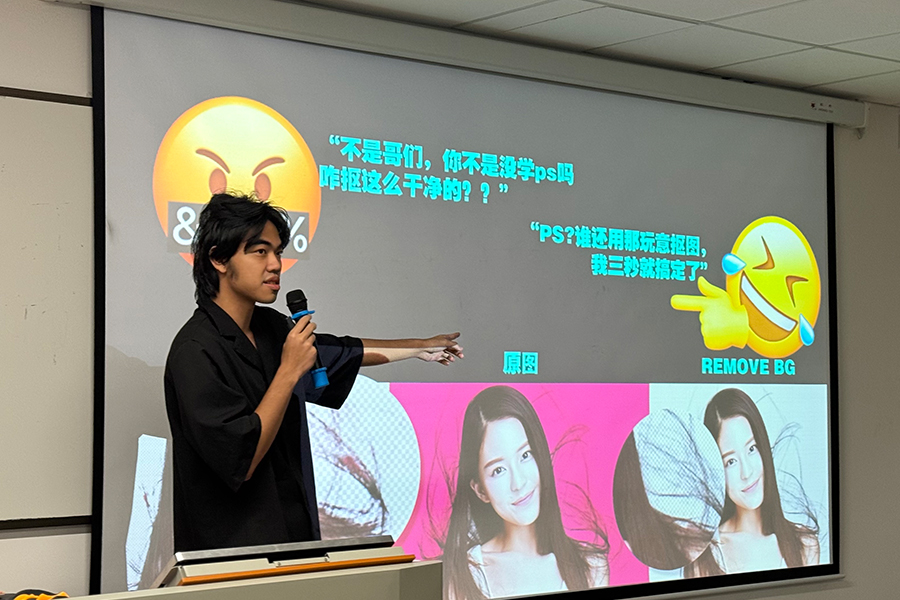 2024年11月7日晚,304am永利集团,304am永利集团在第八教学楼512教室成功举办了一场以“平面设计师的梦幻开局”与“AIGC设计工具及应用实践”为主题的学术交流分享会。此次活动由墨鱼教育设计软件及AIGC板块负责人张誉杰与墨鱼教育平面设计讲师王明志主讲,环境设计教研室主任周子豪主持,专业督导黄禅媛及专任教师阳林杰、刘嘉炜出席,吸引了304am永利集团各专业的学生热情参与,现场交流氛围活跃。