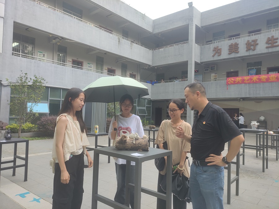 接着,骨干教师潘梦梅作发言。她说,本次展览为公共艺术专业提供了展示的平台,公共艺术专业学生在创作课程中展现出强烈的创作热情,大胆尝试各种新式材料,勇于表达个人真挚的情感,具有一定的开拓创新精神,值得鼓励。最后两位老师分别祝愿本次公共艺术专业优秀课程展顺利举办。