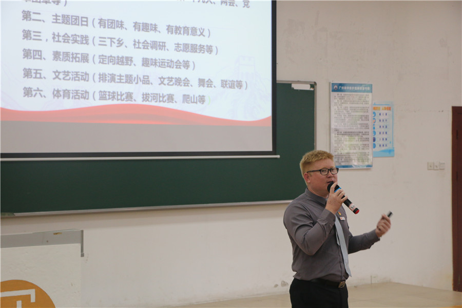 培训结尾,关树基、何泳薇还带领全体班团干部学习团歌《光荣啊,中国共青团》。关树基要求每一位班团干部必须学会团歌。