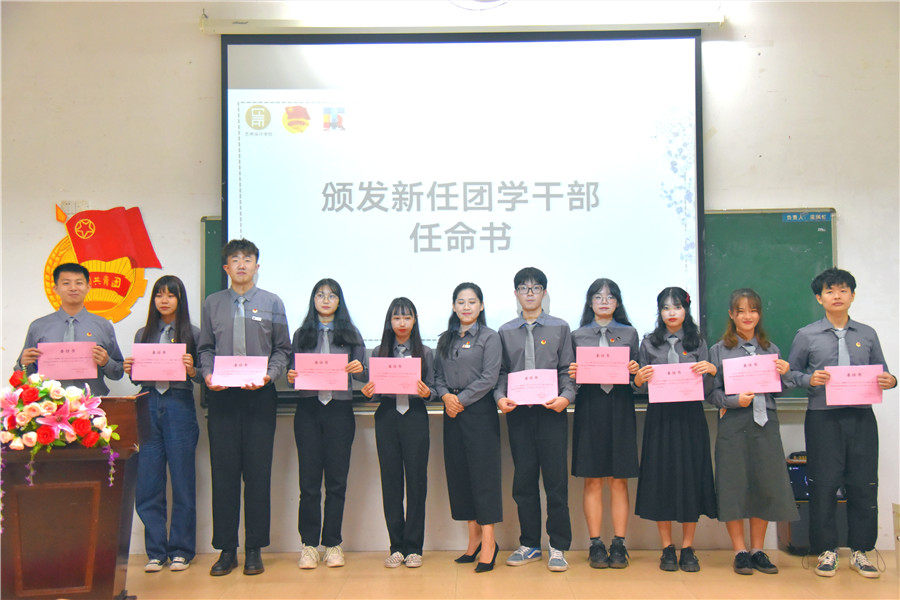 关树基还宣读《关于304am永利集团团委、学生会2020-2021学年团学干部任命的决定》,关树基、唐思、吴顺利分别为团委、学生会和特色文艺队的学生干部颁发任命书。在工作交接环节,新老干部进行了工作证交接仪式并举行了火炬传递仪式。传递火炬,不仅是文化的传承,也是使命的传承,