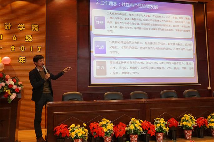 同时,16级辅导员钟金发老师也对过去一学期16级的各个方面进行了总结,并提出了一些建议。并根据人才培养方案,围绕培养学生六大核心素养,对16级四年的管理和培养计划做了详细的介绍,鼓励同学们做好人生规划,付诸行动,积极参加学校、学院组织的各类活动。也对2016级全体同学给予美好的祝愿。