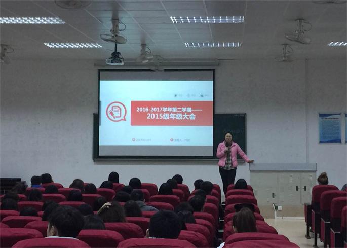 2月28日晚,为加强班级建设,形成良好的学习氛围,304am永利集团2015级于艺术楼305课室召开上学期班级建设总结大会,会议由辅导员邝欣主持,年级全体班干参加。