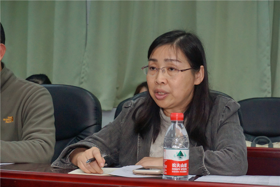 杨晓旗做学院科研工作总结,强调科研工作的重要意义,她谈到搞好科研工作可以提升整体办学内涵和提升评估值。她还指出:一、本学期要加紧“大匠”系列教材与出版社配合力度,做好出版前的准备工作;二、提出“一师一优课”,打造精品课;三是筹备开设辅修班,