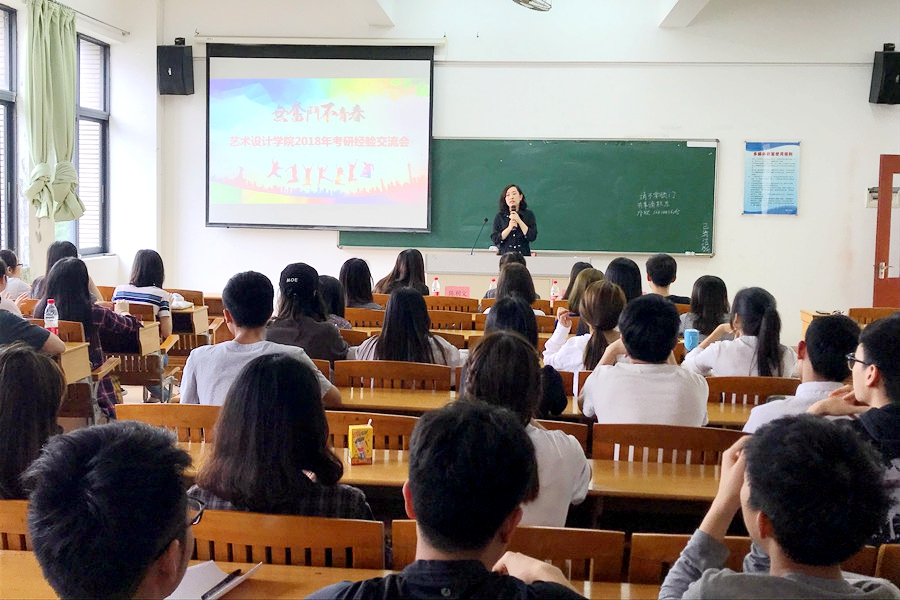 本次活动共邀请了4位考研优秀学子与同学们分享考研成功经验,探讨考研成功之路。考取广州大学的2018届林思欣向大家介绍了考研的科目以及准备流程,并从自己的考研经历出发,建议同学们注重平时积累,打好知识基础,充分掌握复习范围。考取华南师范大学的2017届陈利文为同学们讲解了历年真题的重要性,强调在复习后期须重视真题训练,提高应试能力,考研成功需要正确方法、不懈努力、高质量复习资料三者的有机结合。考取广州美术学院的2017届叶雨呈讲到,在复习备考的过程中,学习的主动性、坚持、深思、总结等习惯的养成是一笔宝贵财富,考研主要考验心态和毅力,要相信自己,敢于坚守目标。考取新西兰奥克兰大学的2018届黎梓晨从出国留学的原因、如何选择国家和学校、申请准备等几个方面为想要留学的同学们提供了相关指引。