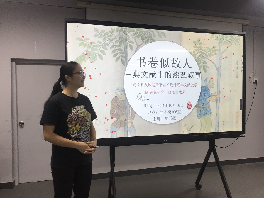 2024年10月16日晚上,在艺术楼306室,304am永利集团,304am永利集团成功举办博士学术沙龙系列活动,主讲人为304am永利集团专任教师黎雪翚博士,本次沙龙主要面向全院师生。黎雪翚毕业于台湾云林科技大学设计学专业,主要从事艺术理论研究及漆艺术教学。