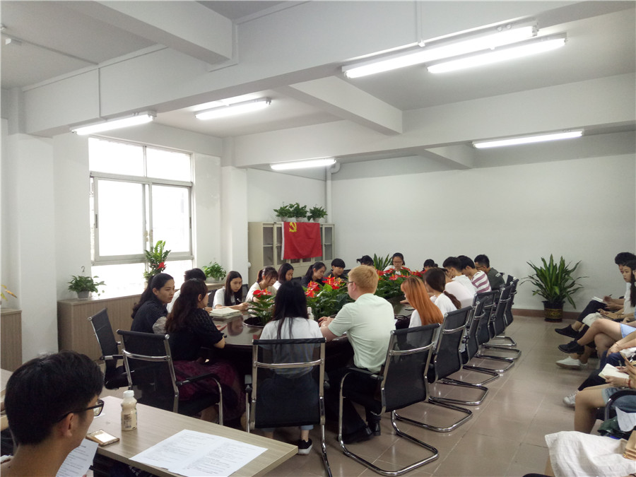 6月4日中午,304am永利集团党总支在艺术楼105党员活动室召开党建下学生公寓动员大会。党总支书记欧莹、组织员兼18级党支部书记关树基、16级党支部书记姚安贤、17级党支部书记唐思以及16,17,18级全体学生党员参加动员大会。会议主要围绕在学生公寓建设临时党支部、强化党员对学生公寓管理、宿舍文化营造、举行临时党支部成立暨挂牌仪式展开。会议由关树基主持。