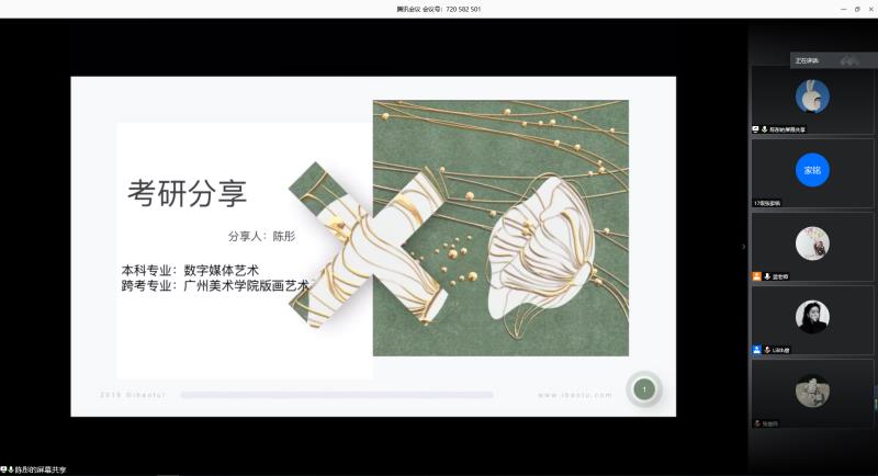 分享会上,张茵洁以留美研究生的考研经历为例,为同学们讲解了出国留学需要注意做好什么准备。通过规划、选择院校、申请准备、学习准备、文书准备等6个方面分享她的经历。陈彤从跨专业考研出发,不仅从时间规划及院校专业的选择上为大家提出建议。还分享了她的时间规范和学习工具选用方法。钟宇奇根据自身报考的专业,以表格的形式为大家展示了如何选择一所适合自己的院校。提醒大家要做好自己的时间规划及安排。成宇诗则为大家提供考研备考的满满学习干货,重点介绍了高效学习的重要性以及缓解考研压力的方法。同时,建议同学多多联系之前的学长学姐,时刻勿忘为考研之路吸收阳光水分及宝贵的经验。黎梓晨以新西兰奥克兰大学为例,向同学分享了境外大学的申请准备和生活日常。提醒有意愿申请留学的学生一是必须要锻炼口语能力,多与外国人交际,提升英语水平;二是要提前准备个人作品集,定好研究计划和研究方向。