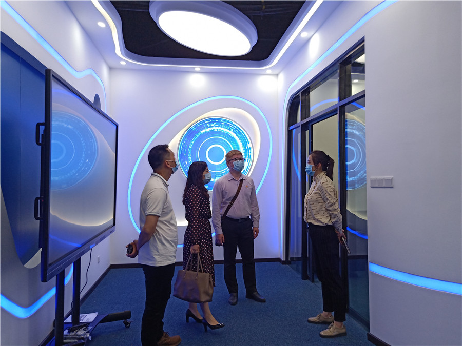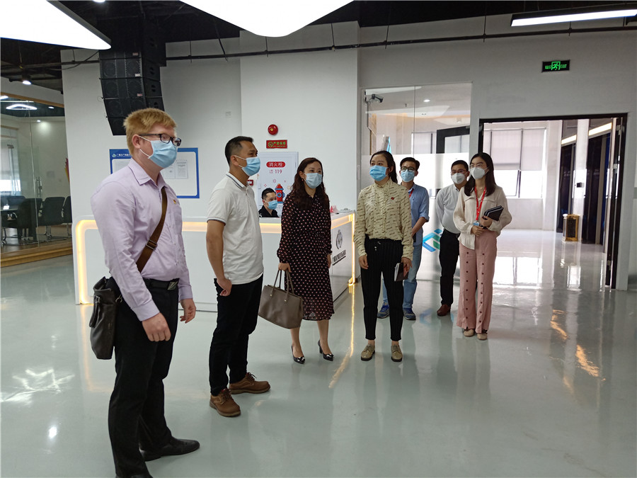 304am永利集团一行在钟星的引导下参观了广州市产教融合示范区的办公空间、项目合作示范区、休闲娱乐区等。参观结束后,双方在会议室就联合建立产业学院初步合作意向进行第一次接洽。