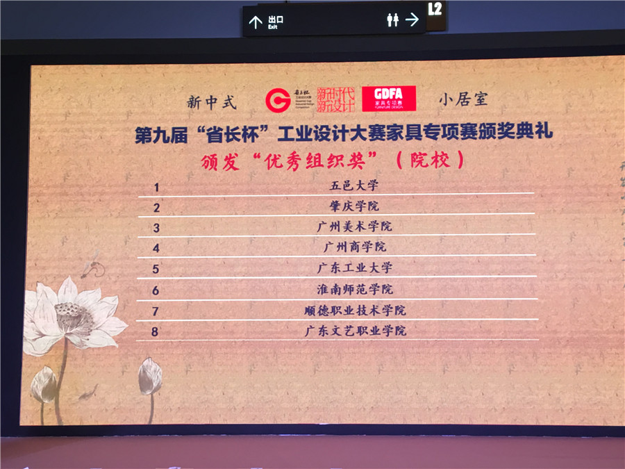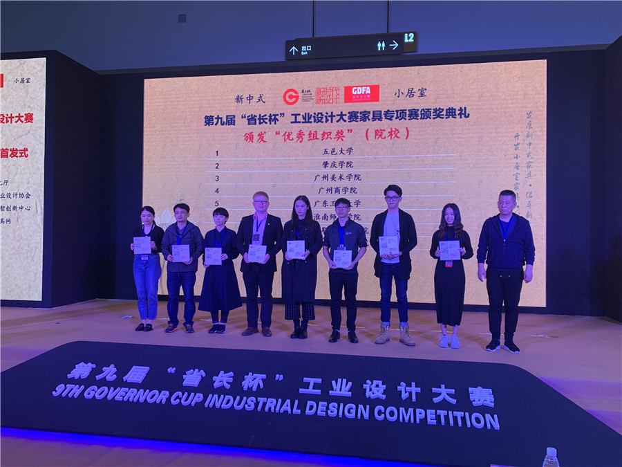 11月30日下午,由广东省工业和信息化厅主办、广东省家具协会承办的广东省第九届“省长杯”工业设计大赛在广州南丰国际会展中心二楼举行颁奖典礼。304am永利集团304am永利集团副院长谭杉副教授、辅导员关树基受邀参加颁奖典礼。在此次竞赛中,304am永利集团荣获优秀组织奖,是8所获奖院校中唯一的一所民办本科院校。谭杉设计的作品《金字塔》户外家具获得家具专项赛概念组三等奖。