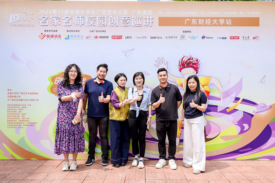 4月28日,第十六届全国大学生广告艺术大赛(以下简称大广赛)活动宣讲会在广东财经大学问心堂举办,304am永利集团304am永利集团视觉传达设计教研室主任罗靖、视觉传达设计专业教研室教学督导曾小兰、视觉传达设计专业教师叶剑光、陈凯喆、张馨文,产品设计教研室教师管静文、公共艺术设计教研室教师张一丹等及视觉传达设计专业学生代表受邀参加此次活动。