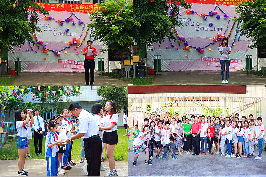活动开始,对艺希之晨筑梦服务队在登畲村开展的为期十天的三下乡社会实践活动做总结和表彰。龙村镇第三小学校长温东保、服务队指导老师钟金发、服务队学生代表黄柳艳和龙村镇第三小学学生代表温佳佳依次进行总结发言。温东保对服务队的热情服务及奉献精神十分赞赏,对服务队全体队员的辛勤付出和显著的活动效果给予充分地肯定并表示感谢。温东保为在教学比赛中获奖的学生和优秀学员进行颁奖,之后和服务队代表钟金发老师互赠锦旗。