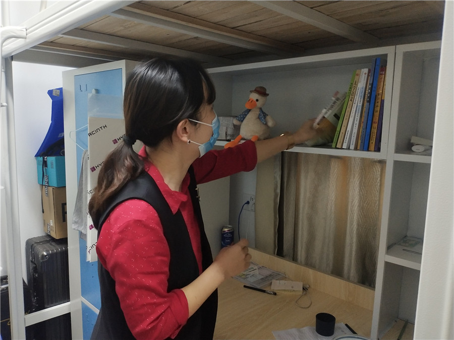 检查内容包括宿舍卫生情况与用水用电的安全问题,并及时督促与解决一些常见的宿舍卫生和安全问题。检查过程中,检查人员针对每个宿舍情况提出整改意见,并且着重强调宿舍安全的重要性。其中大多数宿舍能够达到基本要求,部分宿舍表现突出,在宿舍卫生和安全方面有不俗成绩。但是仍有个别宿舍卫生脏、乱、差,衣服到处乱放,垃圾随处可见,宿舍卫生情况差,插板电线过满的情况。各组带队老师向这些宿舍再次强调了宿舍用水用电的安全问题,针对其存在的不足之处提出了改进措施。并将检查结果反馈至相应辅导员,要求各年级继续开展批评教育并督促这些宿舍进行后期整改。