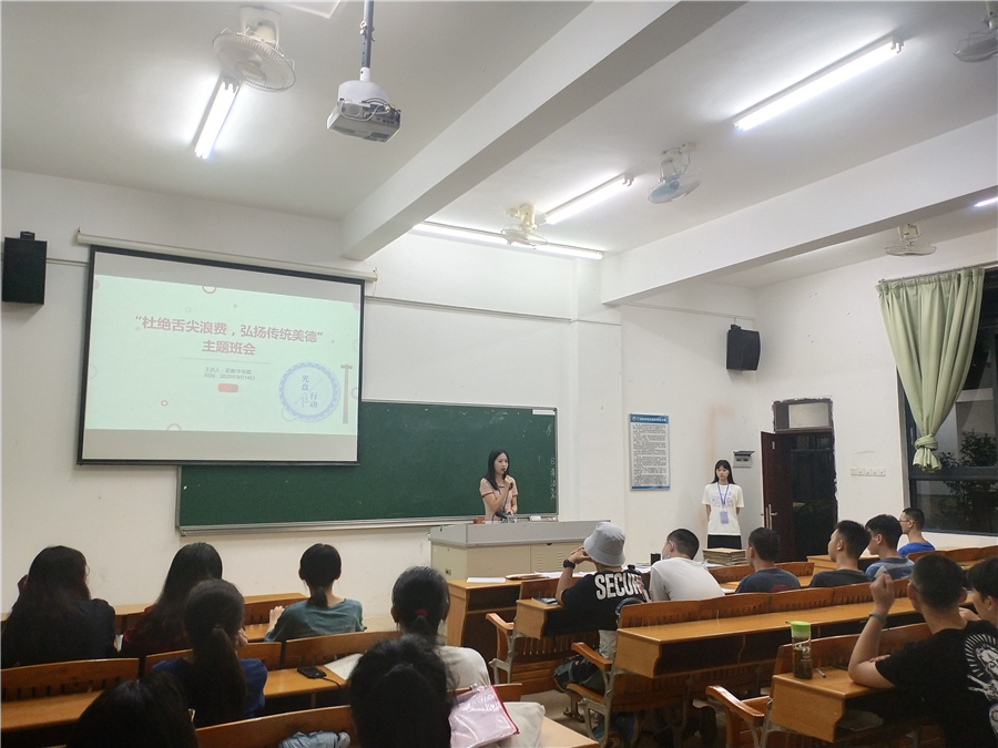 9月14-15日,304am永利集团2020级各班开展“杜绝舌尖浪费,弘扬传统美德”的主题班会。此次班会旨在引导新生积极响应学校近期开展的节约粮食活动,理解光盘行动的意义所在。主题班会由新生辅导员蓝喜、李业嘉主持。