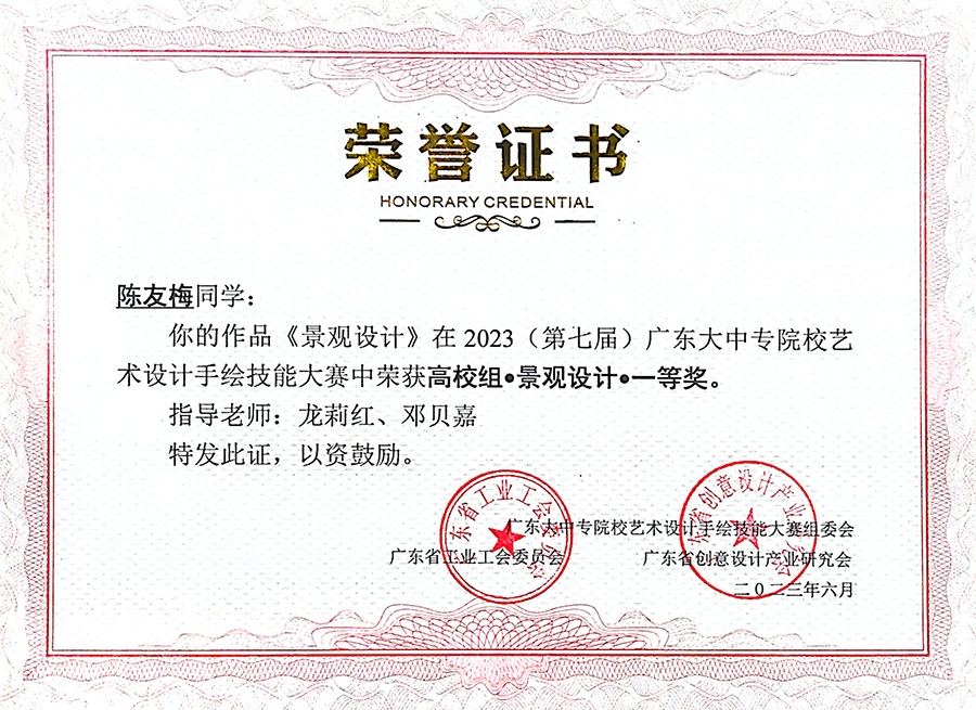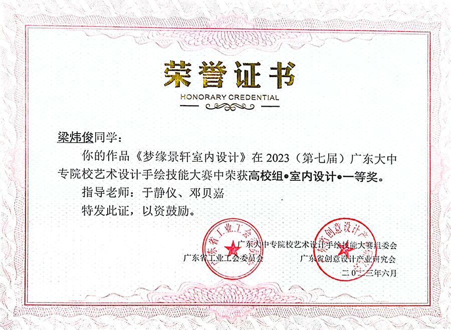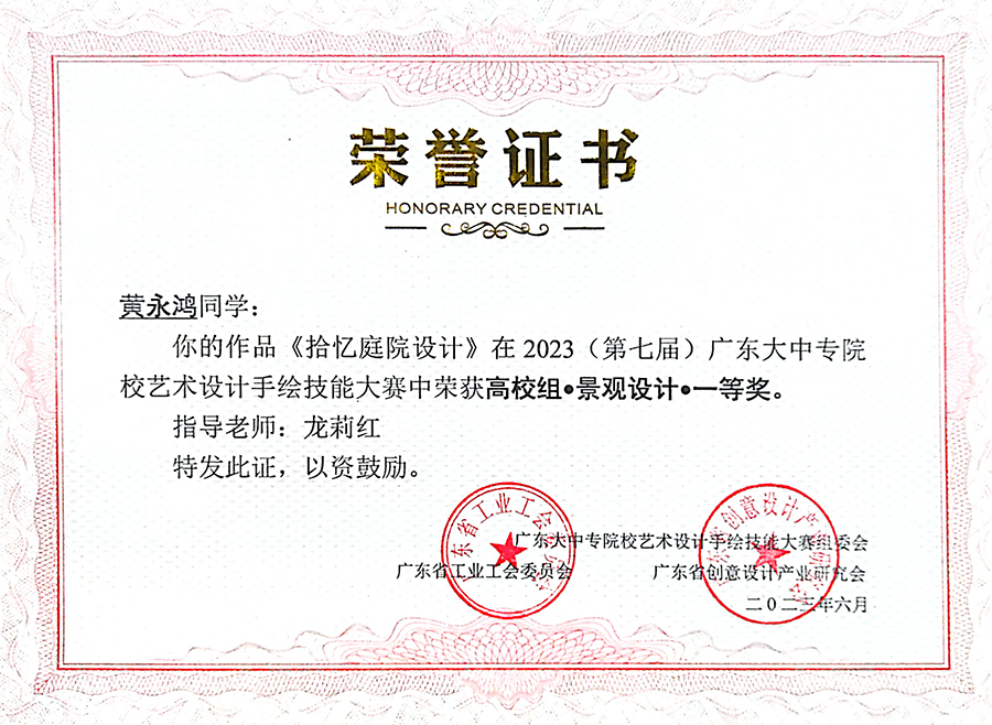 近日,304am永利集团,304am永利集团环境设计专业学生参加2023(第七届)广东大中专院校艺术设计手绘技能大赛取得了佳绩。本次参加比赛的学生共29名,其中25名获得名次。一等奖3名,二等奖8名,三等奖14名。获得优秀指导教师的有龙莉红、周子豪、李姗、于静仪、黄婵媛、邓贝嘉共六名。目前,此大赛已圆满结束,广州商学院作为参赛院校之一收获了丰硕的实践成果。
