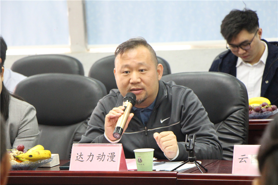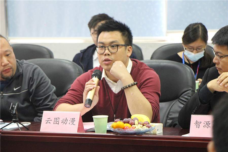 企业方在座谈会上互动,直面回答问题,为我院应用向人才培养和校企合作新模式进言献策。其中,广州云图动漫设计股份有限公司企业代表非常认同学院实践育人的教育模式,并对如何培养学生的“工匠精神”提出了建议。广州达力动漫有限公司企业代表充分肯定了学院毕业生的工作能力和工作潜力,他提出培养人才的双师与梯队制度,并愿意与校方协同培养面向社会,面向市场、有使命担当的应用型人才。广州古藤动漫科技有限公司、深圳市火王燃器具有限公司、广州吾空文化传媒有限公司等企业代表与李诚、谢建鹏、汪大洋、李瑞等教研室主任结合企业用人需求与教研室教学工作围绕校企合作和应用型人才培养进行深入探讨。