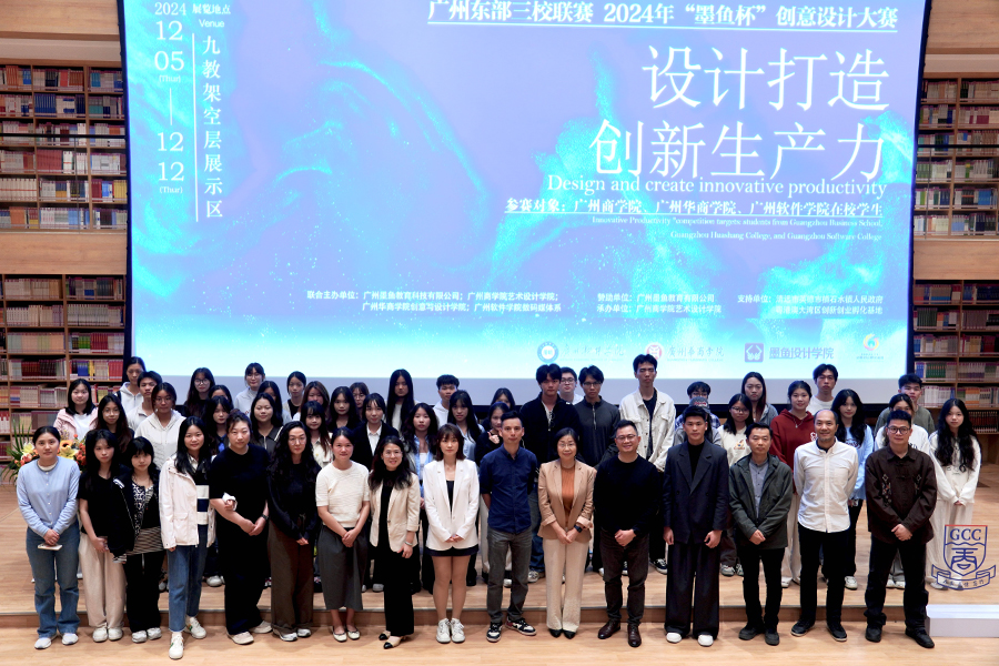 2024年12月5日下午,广州东部三校联赛2024年“墨鱼杯”创意设计大赛颁奖典礼展览开幕式活动在广州商学院图书馆钟书楼和第九教学楼架空层展区隆重举行。本次活动由304am永利集团,304am永利集团、广州华商学院创意与设计学院、广州软件学院数字媒体系联合主办,广州墨鱼教育科技有限公司冠名赞助,并得到了清远市英德市横石水镇人民政府和粤港澳大湾区创新创业孵化基地的大力支持。来自东部三校的专家领导、企业代表、高校教师及学生代表共同参与了此次盛会。